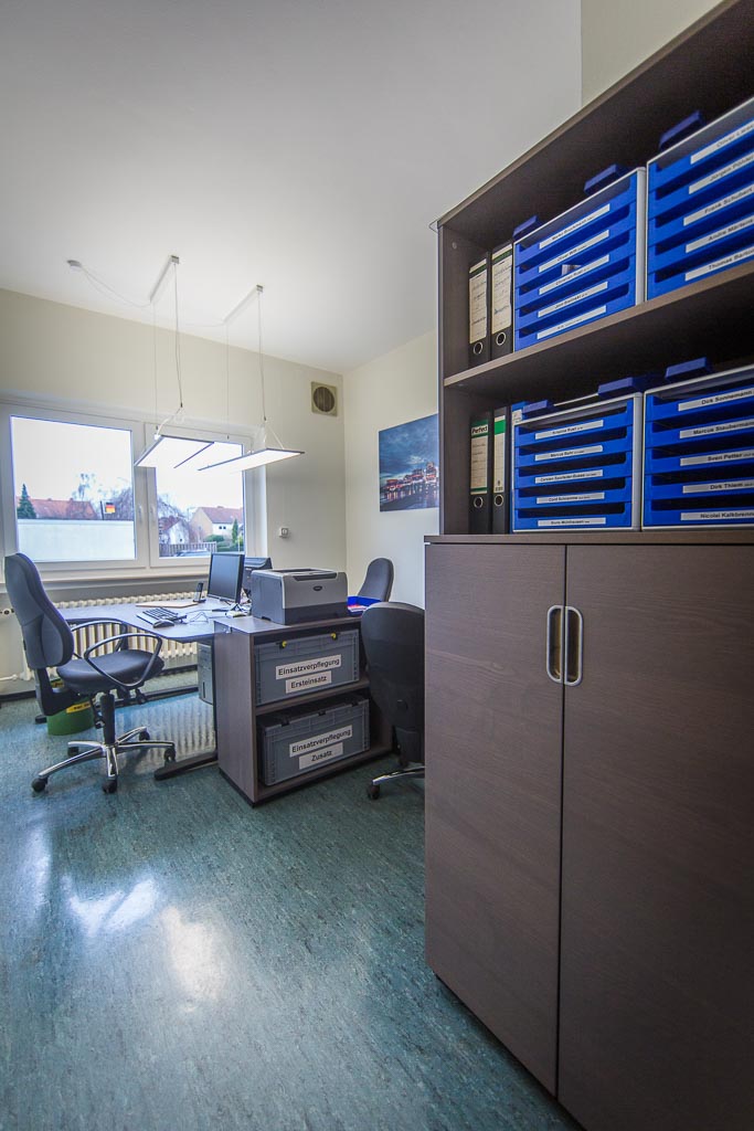 Der Raucherraum wurde aufgelöst, um Platz für einen schon länger gewünschten Arbeitsbereich der Funktionsträger zu schaffen. Zwei vollwertige Bildschirmarbeitsplätze mit zeitgemäßem Schrank- und Ordnungssystem erleichtern den ehrenamtlichen Kräften künftig ihre Arbeiten nach Einsätzen oder vor Ausbildungsdiensten.
