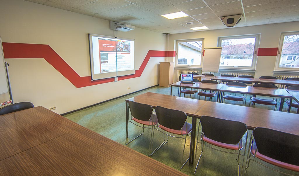 Im Unterrichtsraum wurde eine Präsentationstafel und ein interaktiver Beamer installiert, der mit Gestensteuerung ähnlich eines Touchscreens Bilder von allen gängigen Geräten selbst kabellos darstellen kann. Das Arbeiten mit echten Stiften ist dabei weiterhin möglich.