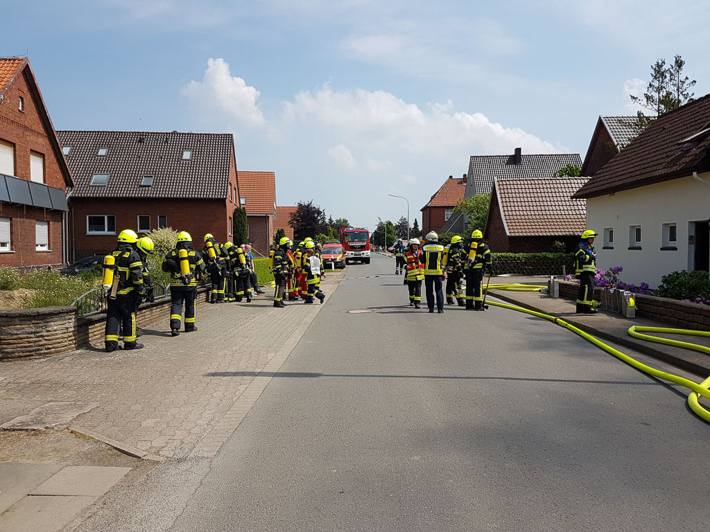 Heute gegen 12:40 Uhr wurden die Feuerwehren Evesen, Röcke, Cammer, Meinsen-Warber-Achum, Bückeburg-Stadt und die ELW-Gruppe der Stadtfeuerwehr zu einem Dachstuhlbrand in den Kiesweg nach Berenbusch alarmiert.