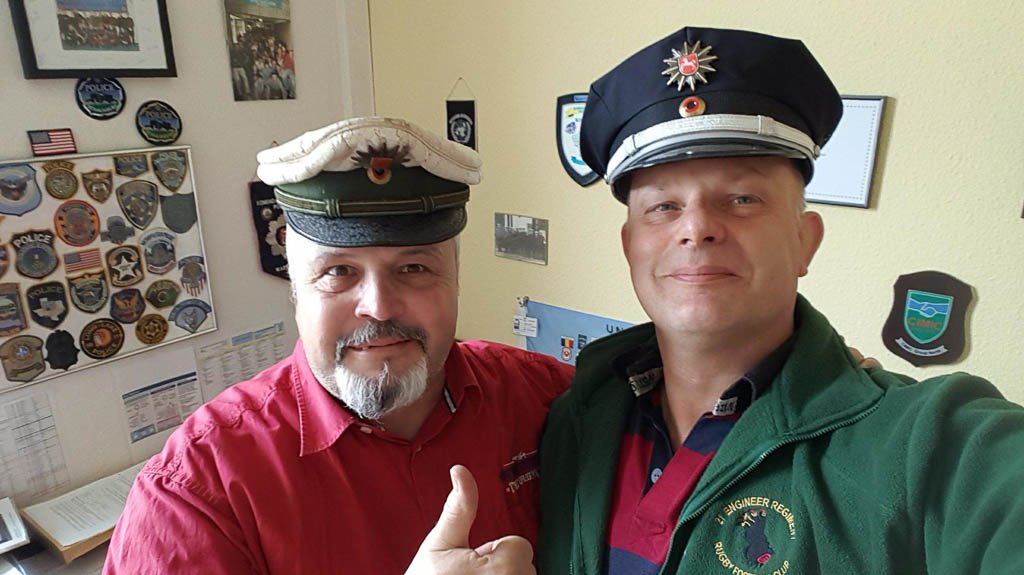 Schließlich ist die amtliche Kopfbedeckung der Polizei Niedersachsen in ihrer alten „grünen Version“ nach langer internationaler Odyssee wieder ins heimatliche Nienburg zurückgekehrt, wo sie in den Räumlichkeiten der Polizei in einer feierlichen Minute von Herrn Morley an Herrn Polizeioberkommissar Balint übergeben wurde.