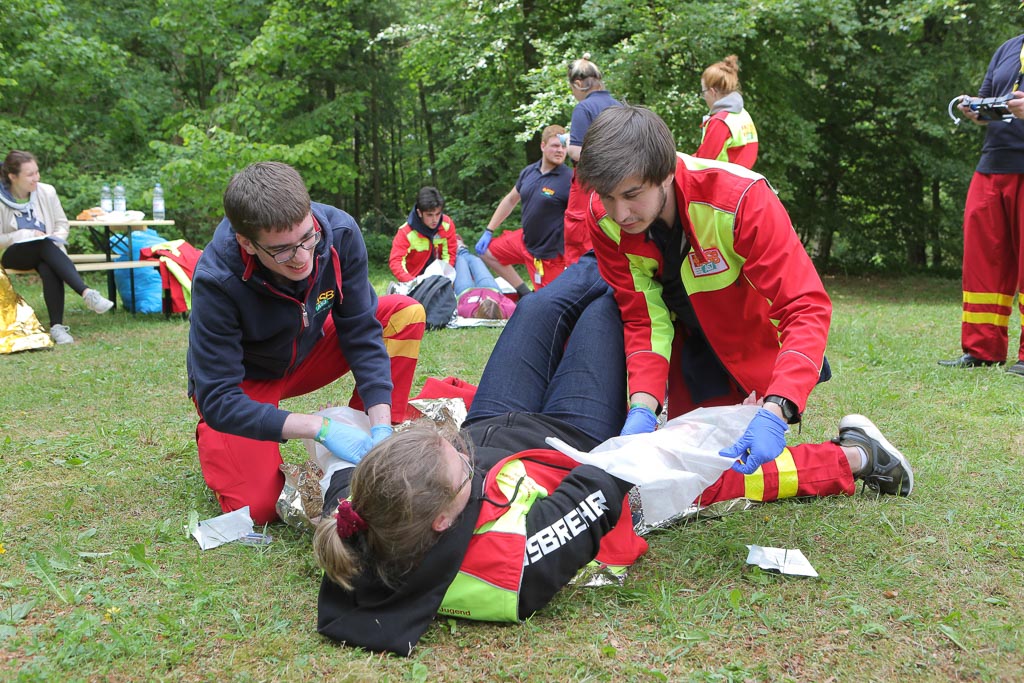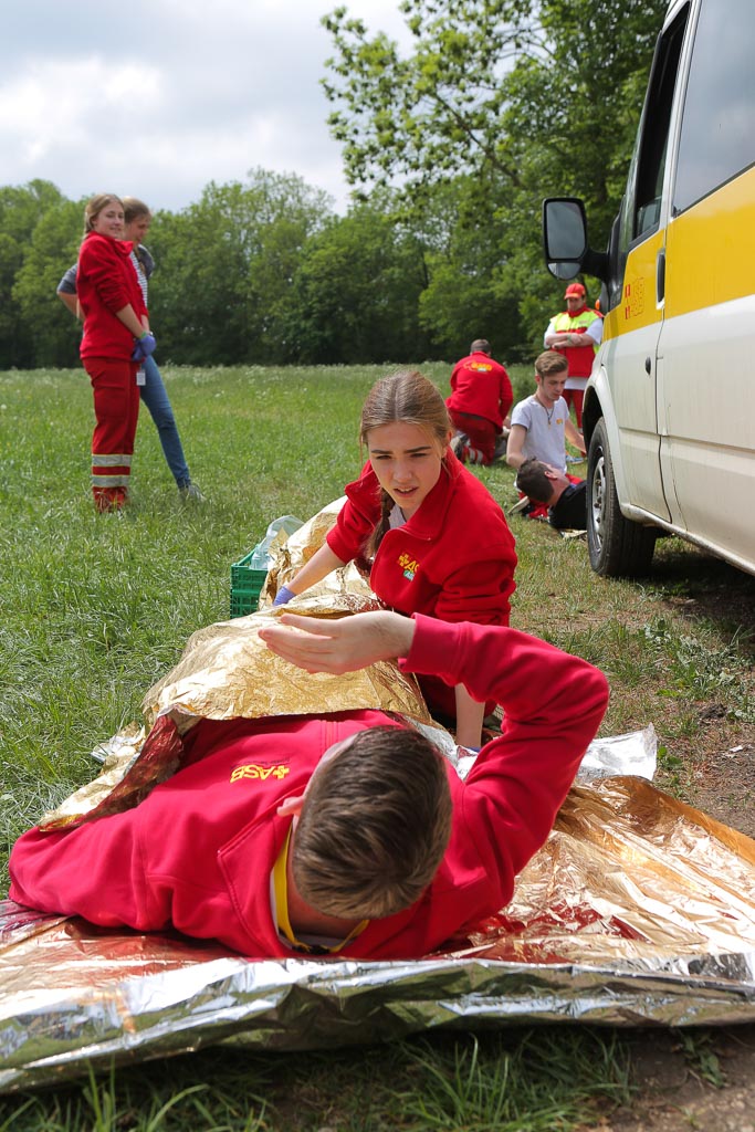 (Bückeburg / Bad Überkingen) Jetzt sollte es schnell gehen – Nach einem simulierten Autounfall galt es offene Brüche und Schnittverletzungen zu versorgen. Diese und vier weitere simulierte Notfallsituationen erwartete die rund 250 Teilnehmer des 27. Bundesjugendwettbewerbs der Arbeiter-Samariter-Jugend (ASJ), der in das alle zwei Jahre stattfindende Bundesjugendtreffen eingebettet wurde. In diesem Jahr fand das Treffen auf dem Gelände des Tagungszentrums auf dem Michelsberg bei Bad Überkingen (Baden-Württemberg) statt. Bei dem Wettbewerb messen Gruppen aus ganz Deutschland über das Wochenende ihre Fähigkeit zu schneller Hilfe in einem Notfall. Der Bundessieger nimmt am europäischen Wettbewerb Ende August teil.