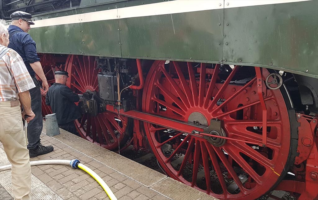 Noch vor Ort sprach man sich ab, der Lok auch am Abend auf der Rückfahrt ins Ruhrgebiet mit Wasser auszuhelfen. Bereits seit Wochen war zudem das Betanken einer anderen Dampflok vom Typ 18 201 angemeldet, sodass an diesem Tag insgesamt zwei Dampflokomotive im Bahnhof Haste betankt wurden. (pr)