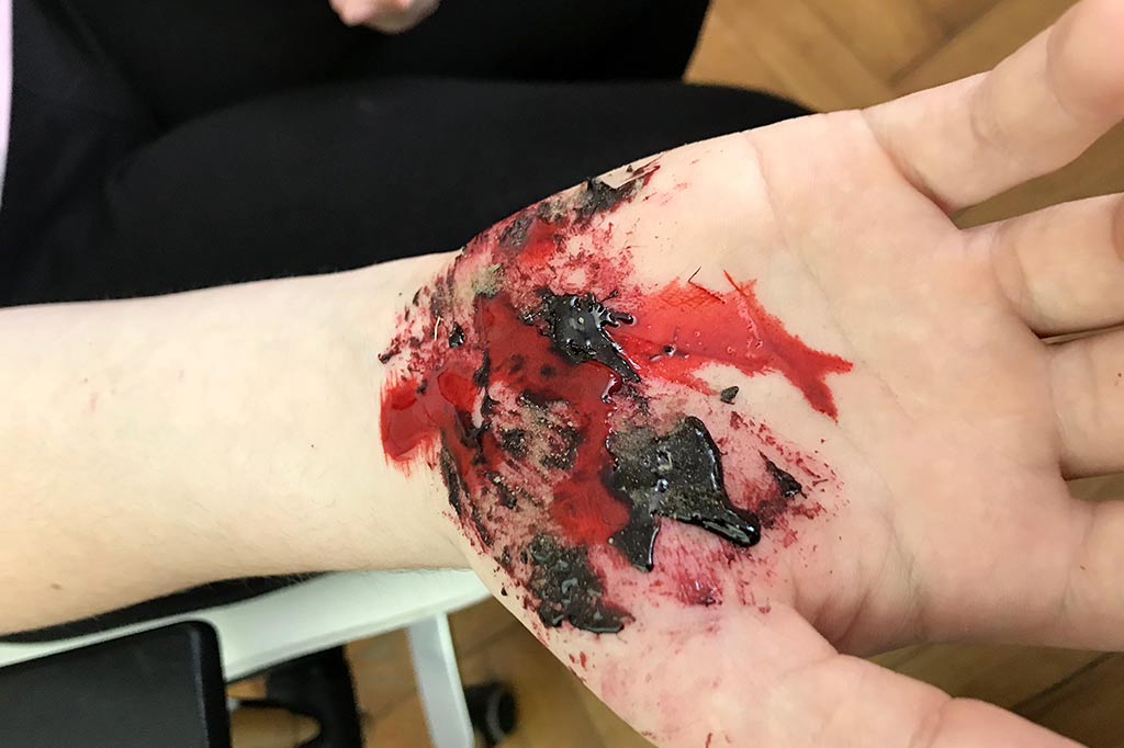 Neun zumeist jüngere Teilnehmer des Schulsanitätsdienstes und der Schnell-Einsatz-Gruppe (SEG) erlernten die wirklichkeitsnahe Wund- und Unfalldarstellung. Die Ausbildung umfasste unter anderem das Schminken von Schock, Schürfwunden, Schnitt-, Riss- und Platzwunden, Knochenbrüche geschlossen und offen, Verletzungen durch Fremdkörper, Amputationsverletzungen und als Königsdisziplin die Brandverletzungen. Am zweiten Ausbildungstag stand die Schauspielerei im Fokus und die Helfer wurden speziell geschult, in Übungen das Verhalten von Verletzten und Betroffenen in Notfallsituationen zu imitieren. Ziel war es, dass Ersthelfer oder Fachkräfte die Unfallsituationen und Verletzungen richtig erkennen und dadurch die entsprechende Hilfeleistung korrekt durchführen können.