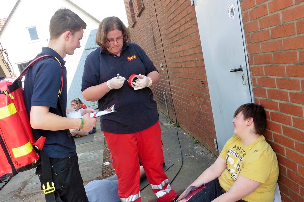 Zum Abschluss des Lehrganges mussten die Teilnehmer als Team innerhalb von zwei Stunden eine Übung mit acht Verletzten nach einer Explosion vorbereiten, schminken und darstellen. Anschließend wurden sie vom simulierten Rettungsdienst versorgt. Die neuen „RUDis“ waren dabei so überzeugend, dass Lehrgangsleiter Jörg Brockhoff vorsichtshalber die Rettungsleitstelle über die Übung informierte. „Die Jugendlichen haben ihre Aufgaben mit Bravour erfüllt und hatten viel Spaß dabei“, erklärte Brockhoff abschließend. (pr/Fotos: privat)