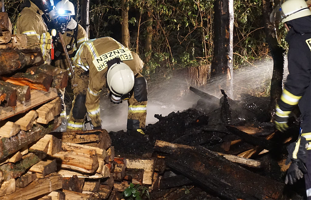 (Stadthagen) Am Montagabend wurde die Feuerwehr Stadthagen gegen 21:30 Uhr zu einem brennenden Gebüsch zum Bruchhof in Stadthagen alarmiert. Da sich die Feuerwehrleute bereits zu ihrem regelmäßigen Dienstabend getroffen hatten, rückten die ersten Fahrzeuge umgehend ab. Den ersteintreffenden Kräften bot sich dann schon von weitem ein anderes Bild: Es brannte kein Gebüsch, sondern ca. 8 Raummeter aufgestapeltes Holz mitten im Waldstück.