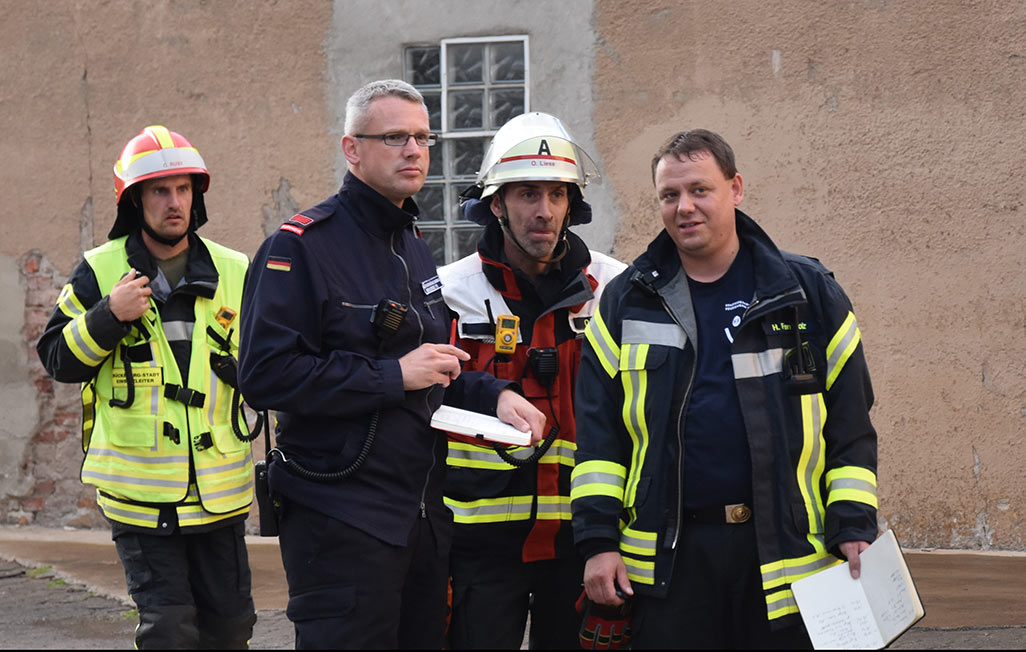 Was die Ehrenamtlichen bis dahin nicht wussten: Es handelte sich hierbei um eine unangekündigte Alarmübung, die durch Heiko Fernholz und Oliver Liese von der Übungsleitung im Vorfeld ausgearbeitet wurde. Lediglich eine Handvoll Leute wussten über die geheime Alarmübung Bescheid. Die Firma Precima stellte hierfür ein Gebäude zur Verfügung, welches in der kommenden Woche abgerissen werden soll.