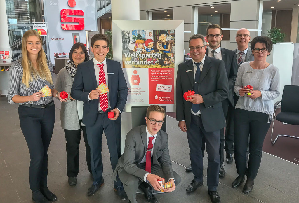 Die Sparkasse Schaumburg feiert den diesjährigen Weltspartag am Dienstag, den 30. Oktober 2018. An den eingerichteten „Kinderschaltern“ werden dann die Spardosen geöffnet, das darin enthaltene Geld gezählt und anschließend dem dazugehörigen Konto gutgeschrieben.