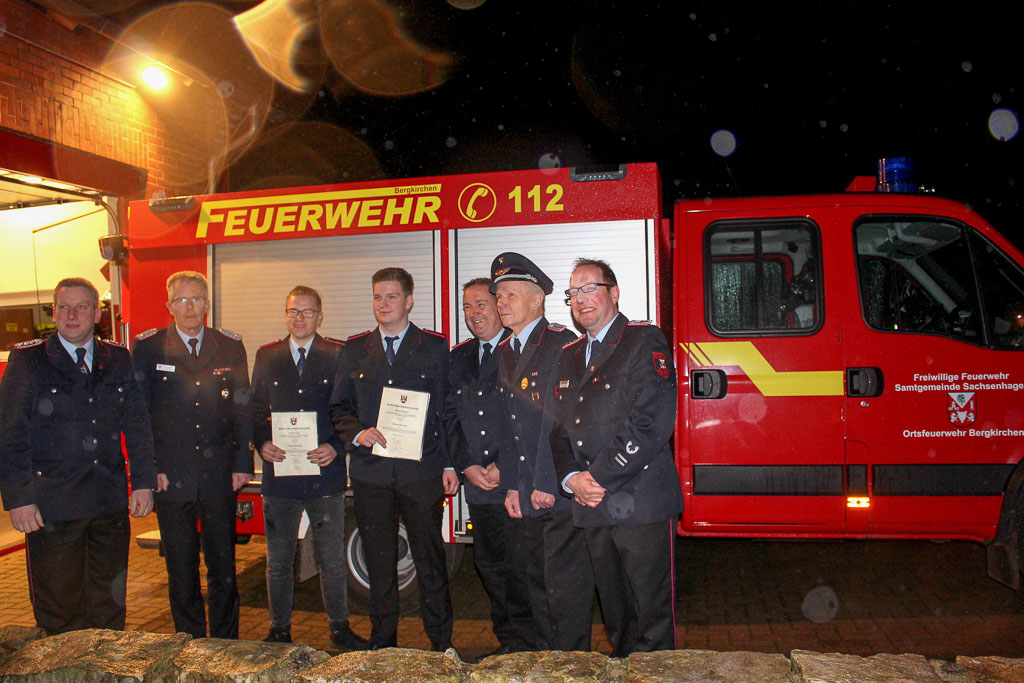 So wurde die Feuerwehr Bergkirchen zu 20 Einsätzen alarmiert. Hervorzuheben sind ein Dachstuhlbrand in Sachsenhagen sowie zwei Gefahrguteinsätze in Wiedenbrügge und Sachsenhagen. Gerade die beiden Gefahrguteinsätze waren dabei sehr zeitintensiv. Beim Dienstgeschehen wurden 4 gemeinsame Dienste mit den Feuerwehren Wölpinghausen und Wiedenbrügge/Schmalenbruch durchgeführt. Unter anderem wurde die Vegetationsbrandbekämpfung sowie die technische Hilfeleistung bei Verkehrsunfällen geübt. Wunnenberg wies daraufhin, das es im Jahr 2019, aufgrund der sich anbahnenden Fusion, nur noch gemeinsame Dienste mit den beiden anderen Feuerwehren geben wird. Fünf neue Mitglieder konnten im Jahr 2018 neu dazugewonnen werden, zwei davon als Aktive Kameraden. Somit hat die Wehr ein Personalstamm von 166 Mitglieder, davon 26 aktiv, 120 fördernd, 2 Ehrenmitglieder,11 in der Jugendfeuerwehr sowie 7 in der Kinderfeuerwehr, aufweist.