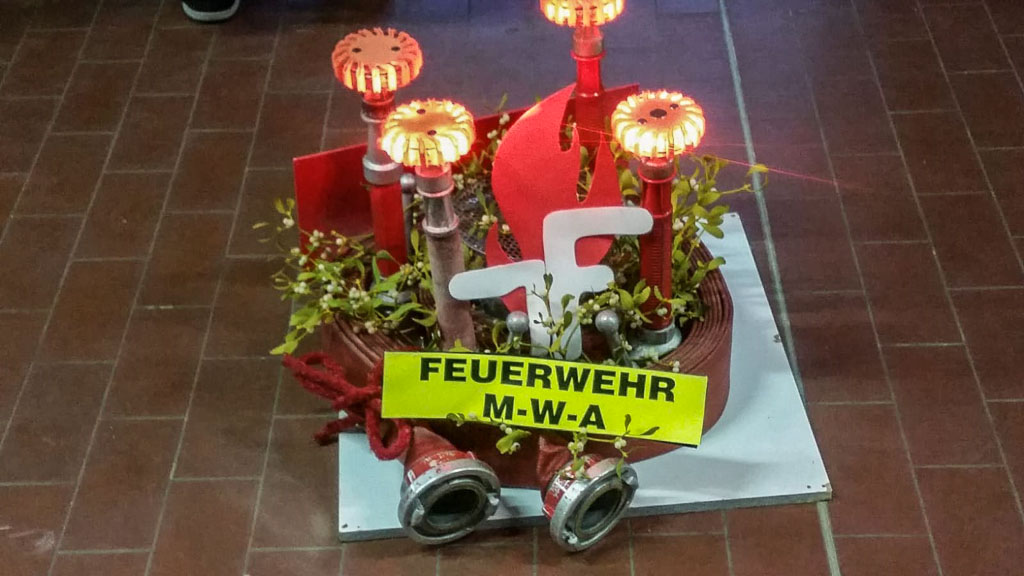 Zur Abwechslung mussten die Jugendlichen einen Adventskranz aus Materialien und Gerätschaften der Feuerwehr bauen, hierbei wurden die jeweiligen Teams sehr kreativ.