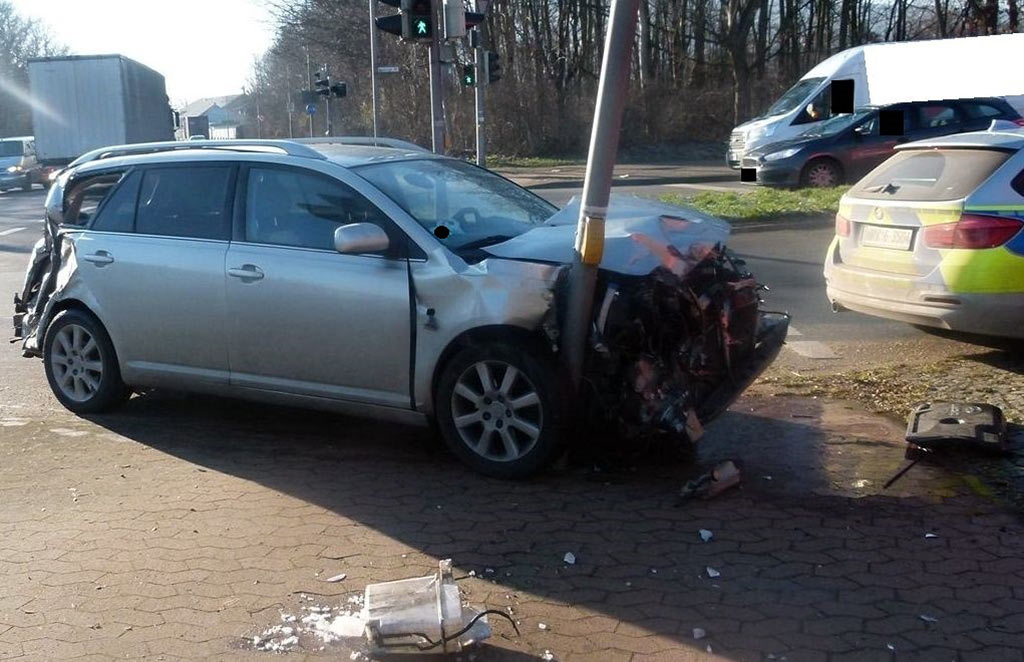 Zuvor hatte die 26-jährige Toyota-Fahrerin aus Fahrtrichtung Minden die Hausberger Straße (L 764) befahren und wollte die Kreuzung in Richtung der Straße „Zur Porta“ geradeaus überqueren. Gleichzeitig befuhr ein 58 Jahre alter Mann nach Zeugenaussage mit seinem Sattelschlepper bei „Grünlicht“ an der Ampelkreuzung die B 482 in Fahrtrichtung Petershagen. Dort kam zum Zusammenstoß der beiden Kraftfahrzeuge. Dabei schleuderte der Toyota gegen einen Ampelmast.