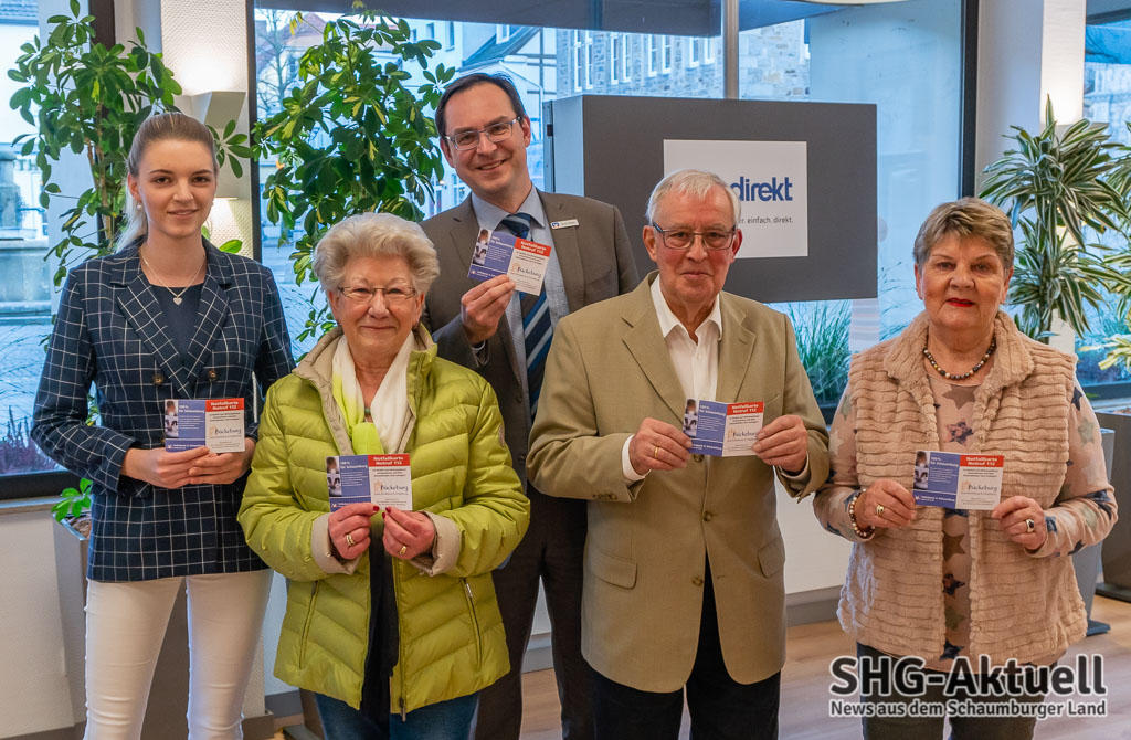 Ebenso haben (Vor-)Erkrankungen und Infos über Herzschrittmacher, Prothesen und Hör- oder Sehhilfen dort ihren Platz. Im Fall des (Not-)Falles kann der Rettungsdienst und behandelnder Arzt auf diese Weise wichtige Erkenntnisse über der Patienten in Erfahrung bringen, sollte dieser einmal nicht ansprechbar sein. Auch Angaben über eine Patientenverfügung und einen vorhandenen Organspendeausweis können wertvolle Hilfe leisten. Bereits 2013 wurde die erste Auflage der Notfallkarten durch die Senioren-Union Bückeburg in der Öffentlichkeit verteilt. Aufgrund der großen Nachfrage wurde jetzt nachproduziert, erklärte die Vorsitzende Ruth Harmening. Unterstützt durch die Volksbank in Schaumburg konnten weitere 500 Notfallkarten gedruckt werden, die ab sofort bei Ärzten, Apotheken, bei der Stadtverwaltung und in der Tourist-Info ausgelegt werden. Als Ergänzung zur Notfalldose, die im Kühlschrank aufbewahrt wird und bei Notfällen in den eigenen vier Wänden lebensrettend sein kann, wird die Notfallkarte bei Einkäufen und Aufenthalten außer Haus mitgeführt.