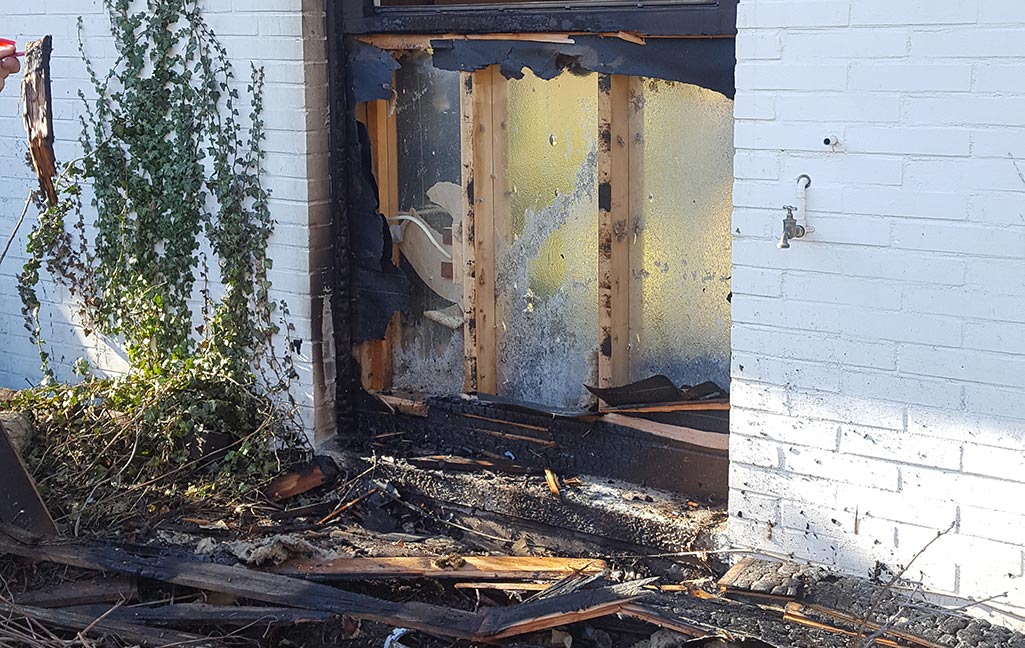 Teile der hölzernen Fassade, der Fensterverglasung und des Daches wurden durch die Flammen in Mitleidenschaft gezogen.