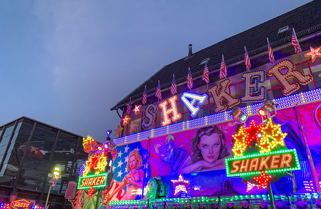 Mit dem Action-Karussell „Heroes“ auf dem Marktplatz erwartet die Kirmesbesucher ein besonderes Highlight. Vor dem Stadthaus erfreut das Karussell „Shaker“ seine Fahrgäste. Wasserspiele und flotte Sprüche sorgen für gute Stimmung.