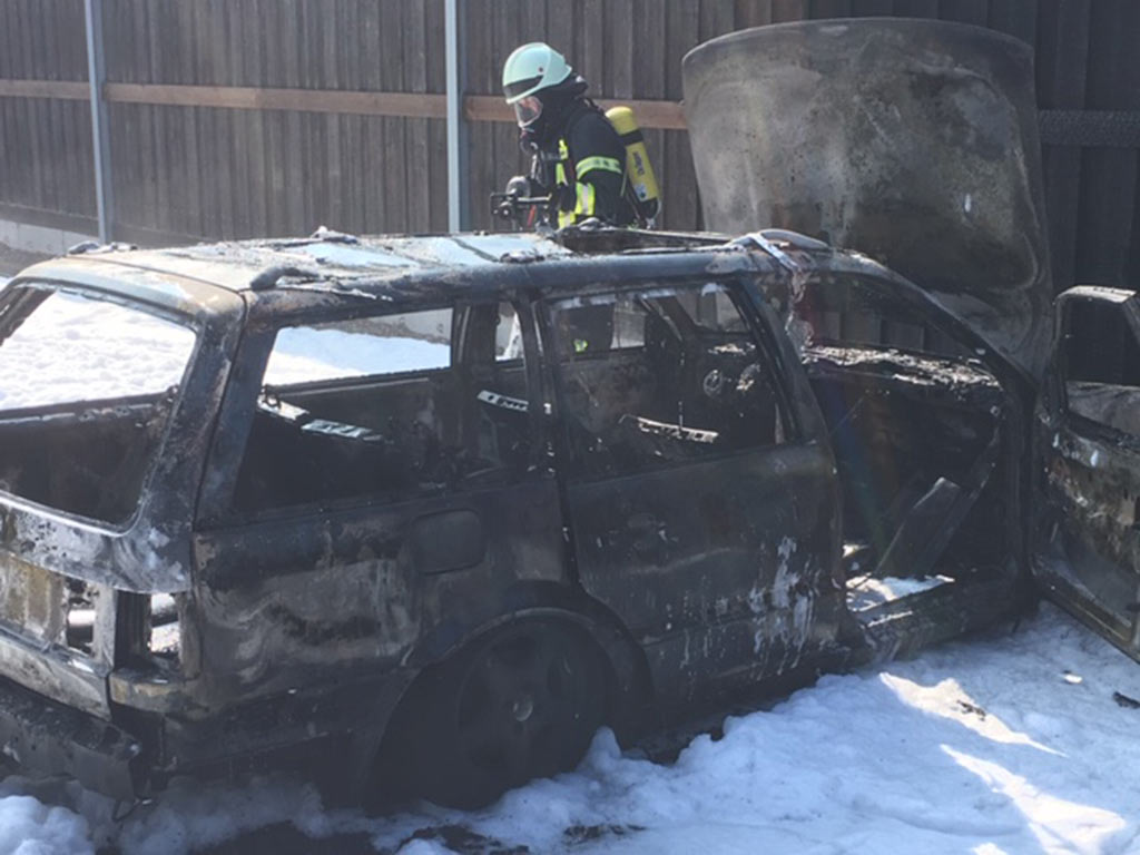 Die Feuerwehr Bad Nenndorf löschte das Fahrzeug und einen angrenzenden Holzzaun. Personenschaden entstand nicht. (po/Fotos: Polizei)