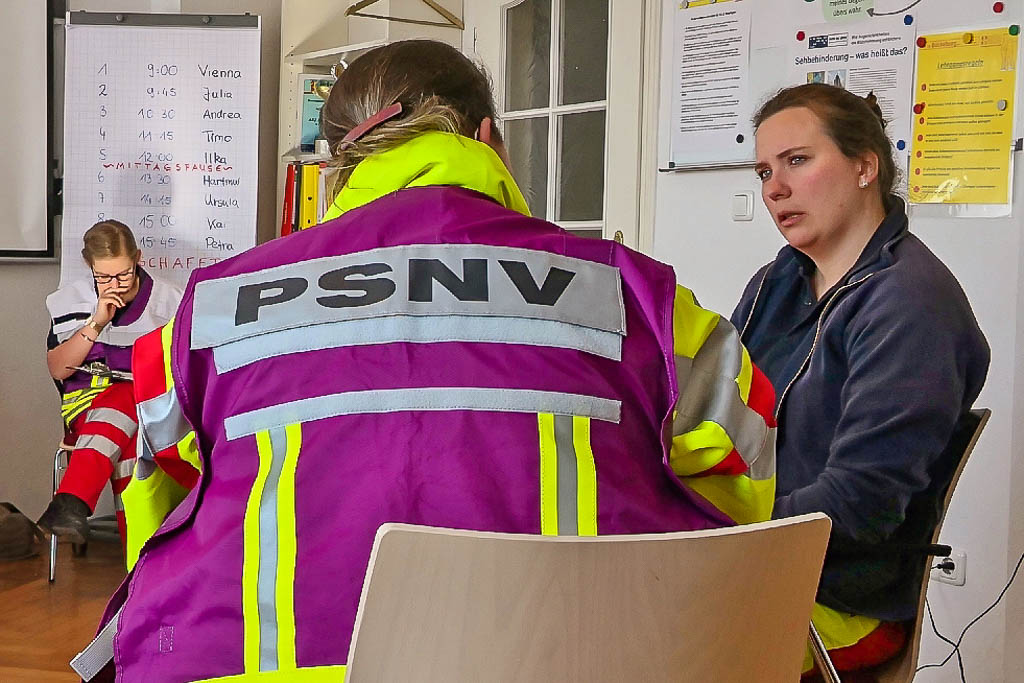 „Unfälle und Suizide sind zeitintensiv“, so PSNV-Helferin Julia Mehlau, hier hatten wir dieses Jahr bereits einen Einsatz, der über vier Stunden dauerte. „Die PSNV-Staffel kann rund um die Uhr, 365 Tage im Jahr von der Rettungsleitstelle alarmiert werden“, ergänzt Petra Stenske, Diplom Psychologin und Notfallpsychologin. Sie kümmert sich unter anderem als fachliche Leitung um die Aus- und Fortbildung der Helfer. Dass die Ehrenamtler gebraucht werden, spiegelt die Bilanz wider. So ist die Einheit letztes Jahr bereits neun Mal zum Einsatz gekommen. Aktuell fand in Bückeburg ein Lehrgang statt, um weitere Helfer zu gewinnen. Der beim ASB-Niedersachsen erstmalige Pilotlehrgang umfasste eine 100-stündige Ausbildung zum Kriseninterventionshelfer. Die Ausbildung wurde von den ASB-Gliederungen finanziert und konnte dank einer Spende von 1.000 € des Paritätischen Wohlfahrtsverbandes für alle Teilnehmer vergünstigt angeboten werden. Die Ausbildung dauerte mit zwölf Teilnehmern aus ganz Niedersachsen und Hamburg insgesamt sechs Monate. Der Lehrgang umfasste unter anderem Kommunikation, Stress- und Belastungsreaktionen, Methoden der psychischen Stabilisierung und den eigenen Umgang mit Belastungen. Die Inhalte entsprechen dem gemeinsamen Curriculum der großen Hilfsorganisationen und Kirchen.