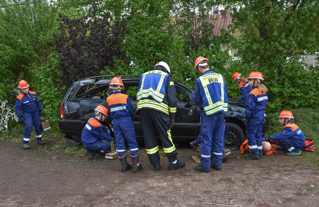 Die gemeinsam selbstgemachten Pizzen am Mittag kamen bei allen gut an, so dass im Anschluss auch der letzte Übungseinsatz – ein gemeldeter PKW-Brand – ohne Probleme abgearbeitet werden konnte. Durch die Besatzung des TLF 3000 wurde das Fahrzeug „abgelöscht“, bei näherer Erkundung konnte eine Übungspuppe unter dem Fahrzeug entdeckt werden, an dieser wurde Erste-Hilfe geleistet und im Anschluss konnte soe mit Hilfe von Unterbauholz und dem Hebekissen aus ihrer misslichen Lage befreit werden.