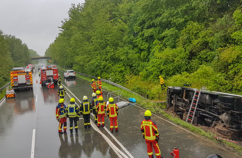 Mehrstündiger Feuerwehreinsatz: Schwerer LKW-Unfall auf der B65 in Bückeburg