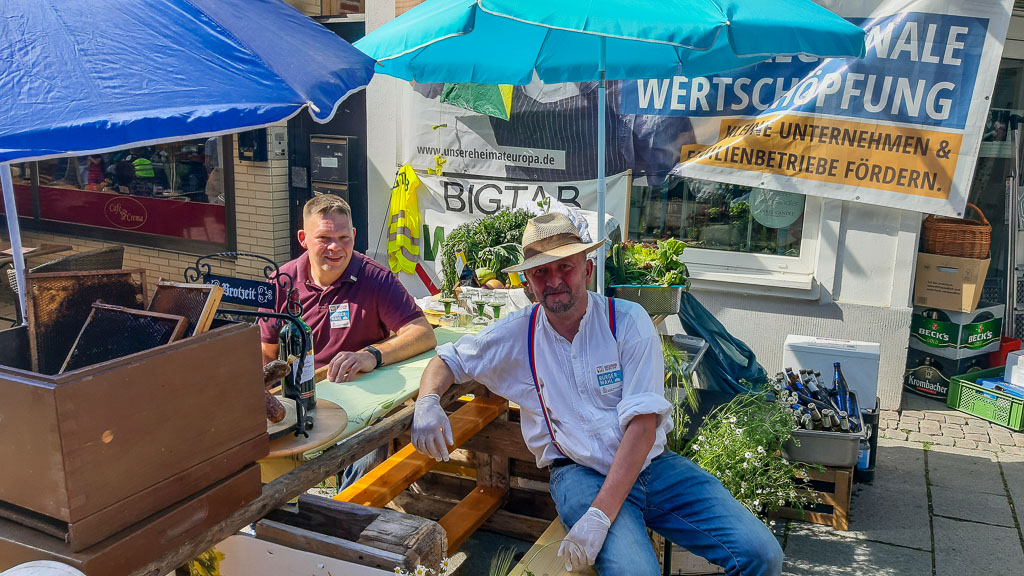 Weiter unten vor einem Immobilienbüro gab es einen tollen liebevoll geschmückten Marktstand der Freien Wähler. Andreas Paul Schöninger und Oliver Salomon bewirteten ihre Gäste mit einem Eibrot und Matjesschnitten. Dazu gab es reichlich alkoholfreies Bier, eine gute Stimmung war garantiert.