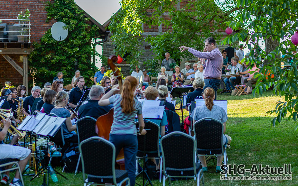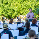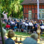 Nach der Pause schmiss das Blasorchster die Zeitmaschine an und wagte einen Ritt durch die besten Songs der 80er Jahre, brachte Kate Winslet und Leonardo Di Caprio in der „Titanic“ dank „An Irish Party in Third Class“ vor aller Augen und legte in der obligatorischen Zugabe dank „Highland Cathedral“ noch einmal nach. Zwischendurch musste der Dirigent immer wieder den Taktstock bemühen, um Mücken und sonstige Fluginsekten frei nach Loriots legendärem Auftritt vor dem Berliner Philharmonieorchester aus dem „Arbeitsbereich“ des Orchesters zu vertreiben. Doch jetzt ist erst einmal Sommerpause angesagt, wir wünschen gute Erholung. (iv)