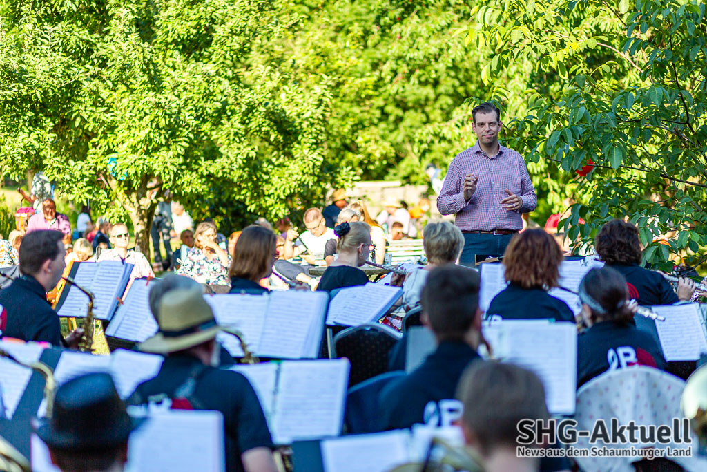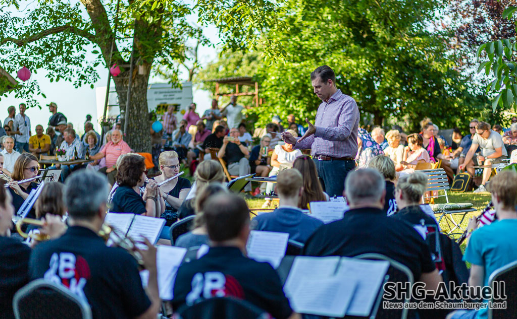 Nach der Pause schmiss das Blasorchster die Zeitmaschine an und wagte einen Ritt durch die besten Songs der 80er Jahre, brachte Kate Winslet und Leonardo Di Caprio in der „Titanic“ dank „An Irish Party in Third Class“ vor aller Augen und legte in der obligatorischen Zugabe dank „Highland Cathedral“ noch einmal nach. Zwischendurch musste der Dirigent immer wieder den Taktstock bemühen, um Mücken und sonstige Fluginsekten frei nach Loriots legendärem Auftritt vor dem Berliner Philharmonieorchester aus dem „Arbeitsbereich“ des Orchesters zu vertreiben. Doch jetzt ist erst einmal Sommerpause angesagt, wir wünschen gute Erholung. (iv)