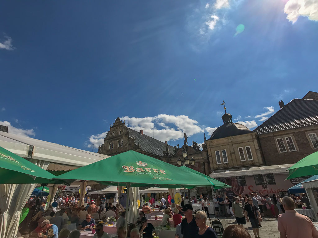 „Bückeburg kocht über“: Traditionell am ersten August-Wochenende, in diesem Jahr vom 2. bis 4. August, präsentiert sich Schaumburgs größtes Freiluftrestaurant rund um Bückeburgs Marktbrunnen. Über 800 Gäste finden an den Bierzeltgarnituren unter dem großen Zeltdach Platz. Die Köche zeigen die Vielfalt ihrer Kreativität, wenn es heißt, sich und Ihre Häuser kulinarisch vorzustellen.