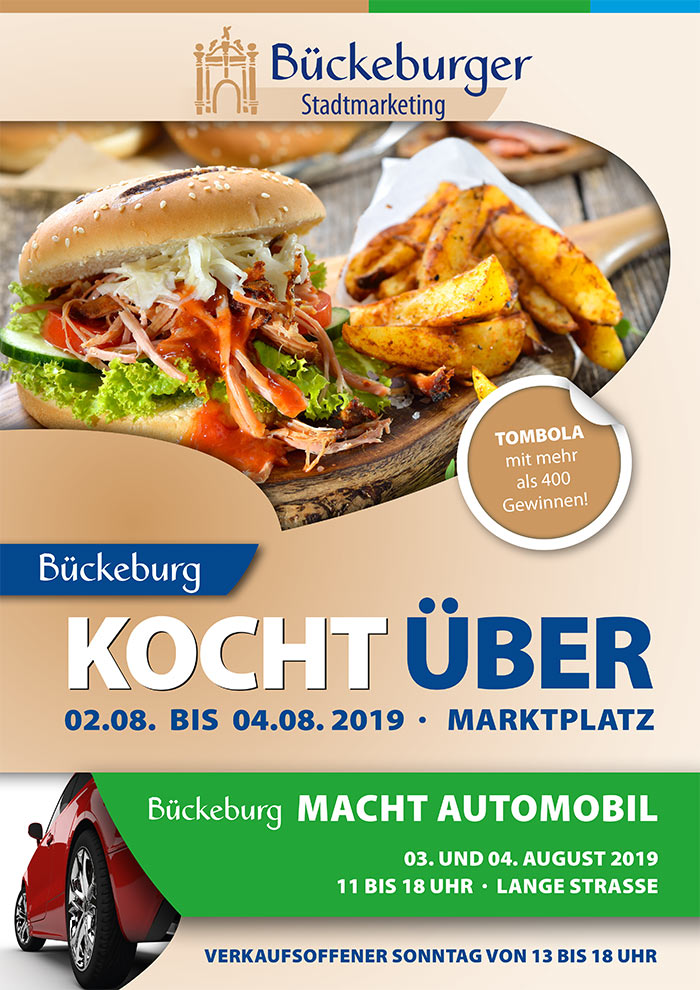 Genießen Sie also den Sommer und lassen Sie sich einmal mehr verwöhnen bei „Bückeburg kocht über“ und „Bückeburg macht automobil“.