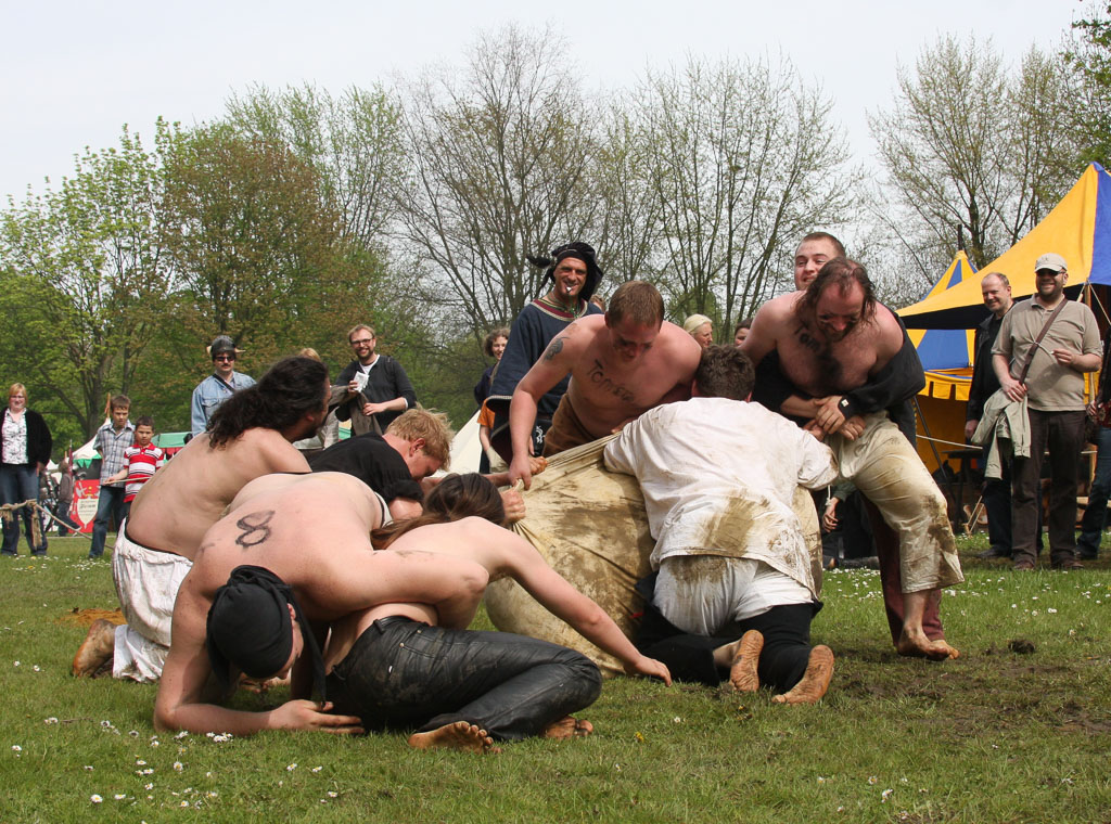 Gaukler und Zauberer, Stelzentheater und Feuerkünstler, Puppentheater, ein Tanzworkshop und der große Händlermarkt mit mehr als 150 Ständen, mit Tavernen, Grilltheken, Kaffeeausschank und mittelalterlichen Spezialitäten sorgen für weitere Kurzweil.
