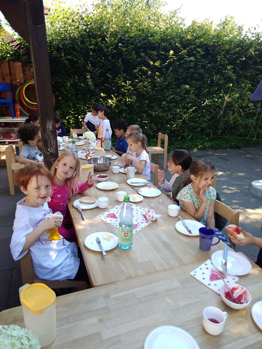 Bei perfektem sommerlichen Wetter gestaltete das Team der Erzieherinnen für sie, ihre Eltern und Geschwister zahlreiche Spielaktionen, Schminken und eine stark frequentierte Cocktailbar, an der sich Kinder und Eltern an alkoholfreien Getränken stärken konnten.