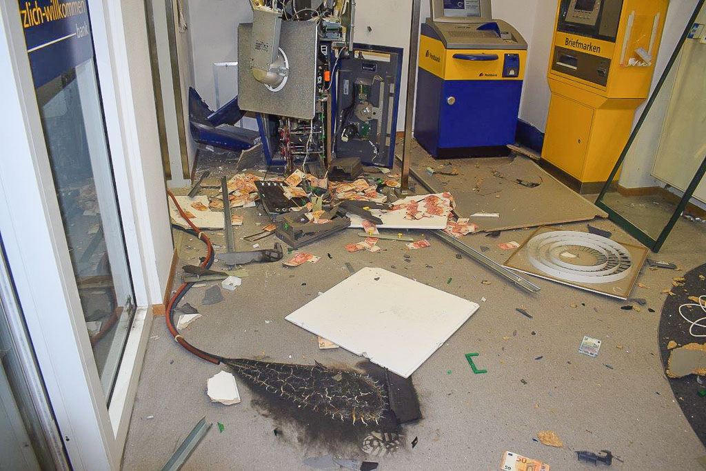 Die Täter ließen eine größere Menge an Bargeld zurück, das wild verstreut im Vorraum der Bank lag.
