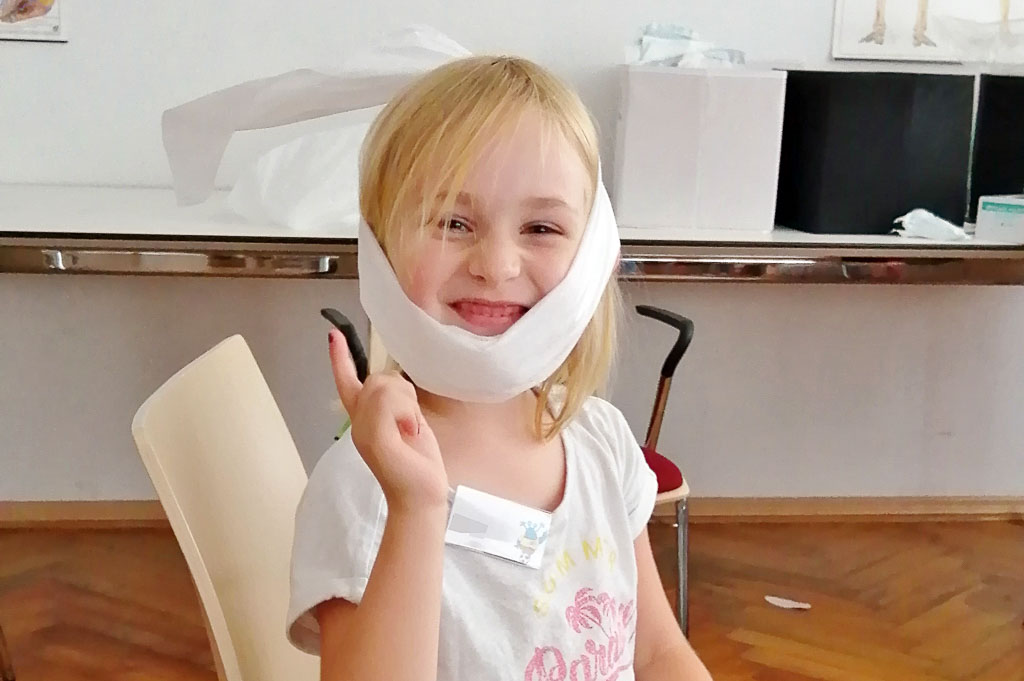 Denn helfen kann jeder und sei er noch so jung. Etwa, indem man einen Erwachsenen verständigt, wenn man jemanden bewusstlos oder blutend auf dem Boden liegend findet. „Oder indem man laut um Hilfe ruft, das vergessen die meisten“, wie Lukas Wilkening von der SEG weiß. Geübt wird auch, dass bei einem Notfall mit Verletzten die 112 anzurufen ist und welche Informationen beim Absetzen eines Notrufs wichtig sind. „Und erst auflegen, wenn der Mann in der Leitstelle einem das erlaubt“, schärft Renée Bergmann den Jungen und Mädchen ein. Nicht, dass diesem noch wichtige Informationen fehlen, die er braucht, um die nötigen Rettungskräfte losschicken zu können. Doch die Kinder lernen von den ASB-Helfern auch, wie man selbst Hand anlegt. Was ist eine Kompresse und wie befestige ich diese mithilfe einer Mullbinde auf der verletzten Stelle? Die Jungen und Mädchen üben es, indem sie sich gegenseitig Verbände anlegen. Und was ist ein Dreieckstuch und warum muss ich Handschuhe anziehen, bevor ich einem Verwundeten helfe? Maximilian Walpert erklärt dies geduldig und immer wieder.