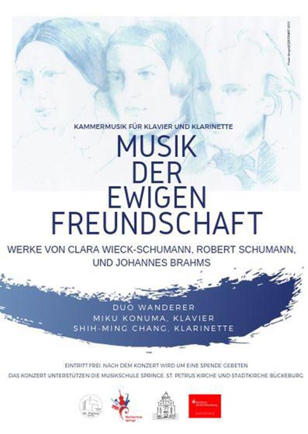 Update: Anstelle der ursprünglich angekündigten Miku Konuma, die krankheitsbedingt nicht auftreten kann, wird Christiane Frucht (Dozentin für die Korrepetition an der Hochschule für Musik und Medien Hannover) zusammen mit dem Klarinettisten Shih-Ming Chang auftreten.