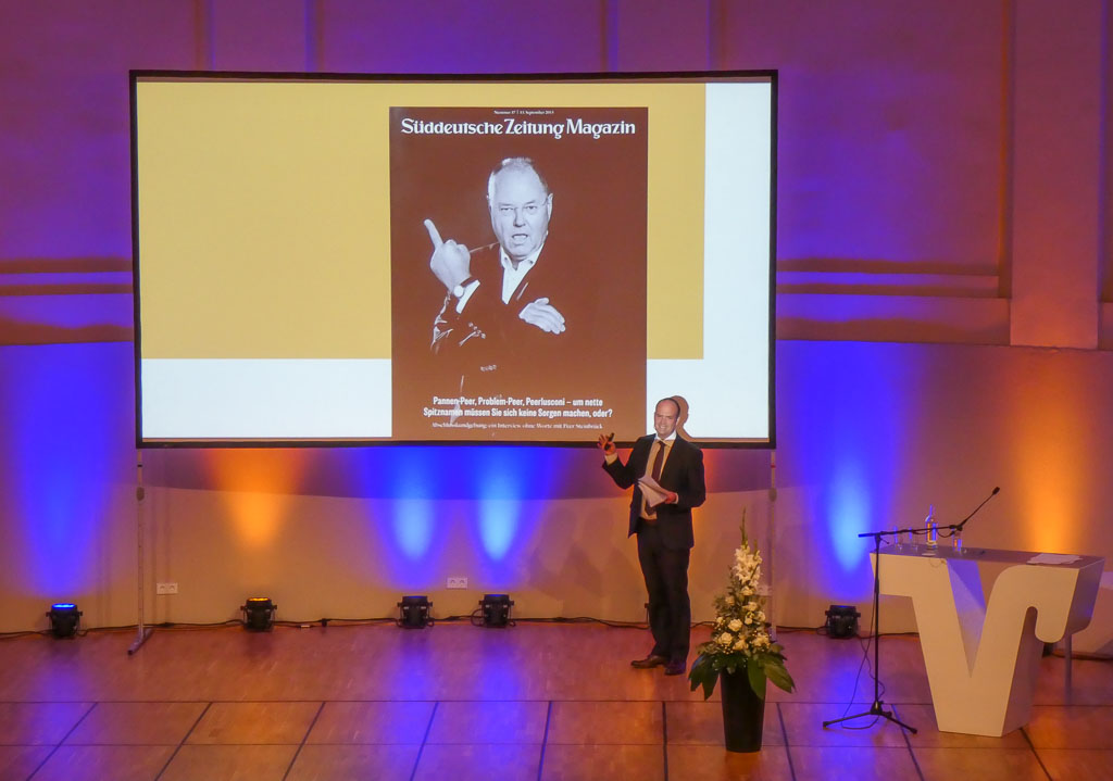 Höhepunkt des Abends war der Vortrag von „Welt“-Redakteur Robin Alexander. Er erklärte den Mitgliedern auf sehr anschauliche und verständnisvolle Weise, wie gut Behörden und hier ganz speziell die Parteien über die Bürger Bescheid wissen. Er zeigte u.a. auf, wie Politiker dem Volk wörtlich nach dem Mund reden und wie Entscheidungen nach Stimmungslage getroffen wurden. Robin Alexanders These: Politik wird auf Basis von Stimmungen gemacht und soll ein Gefühl der Geborgenheit vermitteln. Als Chefreporter der „Welt“ begleitet Alexander seit Jahren Bundeskanzlerin Angela Merkel und beschreibt seine Arbeit so: Er „schaut Regierenden beim Regieren zu“. Deshalb begründet er exemplarisch anhand Merkels Politik seine Thesen. Die Bürger gingen oft davon aus, dass wichtige Entscheidungen im Bundestag getroffen würden. Dem sein nicht so: Die eigentliche Arbeit finde in den Ausschüssen statt. Durch Wahlen habe der Bürger das Gefühl von „Wir regieren“. Das sei nicht so gut, wie es sich anhört. Denn die Kanzlerin „drehe ihr Fähnchen im Wind“. Wenn die Bevölkerung etwas anderes wolle als sie, lässt sie das durch professionelle Demoskopie feststellen und richtet ihre Politik danach aus. So sei vom „Leipziger Programm“ der CDU von 2003 später so gut wie nichts umgesetzt worden – weder eine große Steuerreform noch energiepolitische Ziele. Merkel erkannte, dass sie 2005 trotz und nicht wegen ihres Programms gewählt wurde.