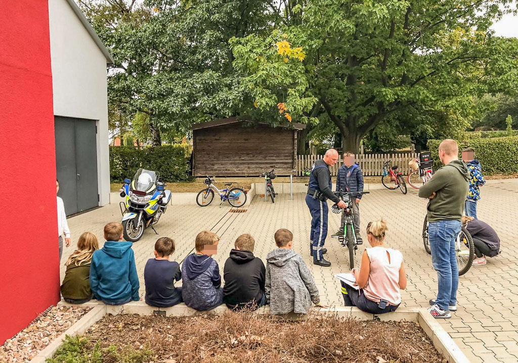 Die meisten Fahrräder waren jedoch verkehrssicher und konnten mit einer Prüfplakette ausgezeichnet werden. Nach Abschluss der spannenden Prüfung konnten die „kleinen Feuerwehrleute“ dann für ein Erinnerungsfoto auf dem Polizeimotorrad probesitzen. (po/Fotos: Polizei)