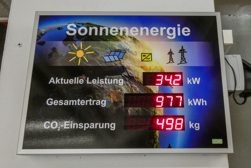 Die Anlage liefert im Jahr ca. 80.000 kWh an das Gymnasium, das Gesamtvolumen beläuft sich auf jährlich ca. 240.000 kWh. Da in den Sommermonaten die größte Erzeugung, aber die geringste Abnahme stattfindet, wird der überschüssige Strom in das Stromnetz eingespeist. Laut Jahresabrechnung des Energieversorgers aus dem Jahr 2019 und der Ertragsprognose kann die Anlage in den Sommermonaten größtenteils den Strombedarf der Schule decken. Die Aufteilung des jährlichen Strombezugs stellt sich demnach wie folgt dar: Lieferung Energieversorger: ca. 160.000 kWh, Lieferung Bürger Energie Genossenschaft: ca. 80.000 kWh. Bei einer angenommenen jährlichen Strompreiserhöhung von 3 % und einem jährlichen Verbrauch von ca. 240.000 kWh ergibt sich über 25 Jahre für den Landkreis eine Ersparnis von ca. 170.000 Euro.