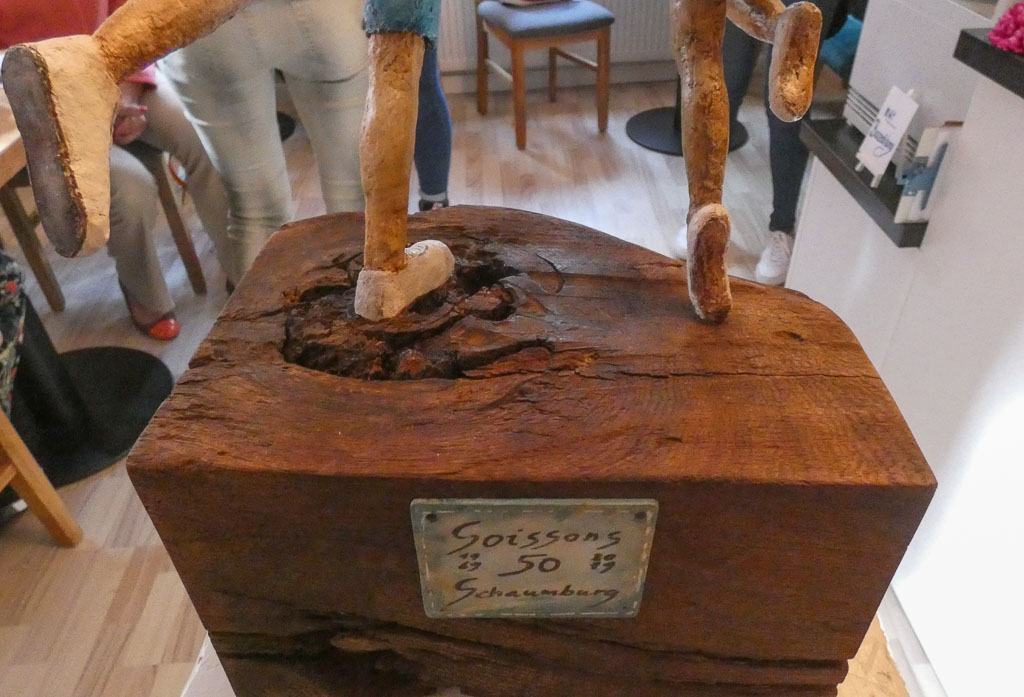 (Landkreis/Soissons) Unter begeistertem Applaus enthüllte Petra Ritter, Vorsitzende des Deutsch-Französischen Clubs in Stadthagen, im Café Illustre im Beisein der Ausschussmitglieder und anderen „Soissons-Freunden“ die Skulptur der Künstlerin Martina Reis, bevor das Werk bei der gemeinsamen Ausschusssitzung in Soissons am 9. November an die französische Delegation übergeben wird. Zum 50-jährigen Bestehen der Partnerschaft mit Soissons hat der Landkreis dieses Jahr ein Gastgeschenk von der Künstlerin Martina Reis anfertigen lassen.