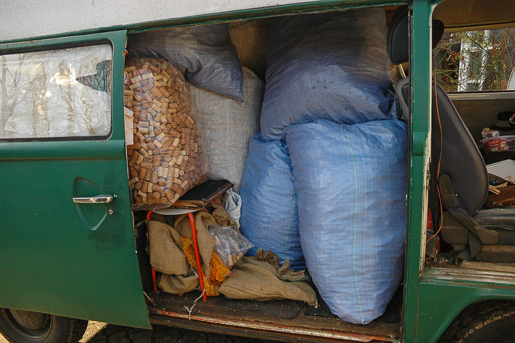 Glücklicherweise gibt es das Umweltzentrum in Braunschweig, welches seit 1995 ein Korksammelprojekt unterhält, das ursprünglich zur Verminderung der Abfallberge ins Leben gerufen wurde. Dort engagiert sich seit über 25 Jahren Friedrich Walz, der sich bereit erklärte, mit seinem altgedienten VW-Hochdach-Transporter die gesammelten Schätze abzuholen und zu diesem Zweck die anderthalbstündige Fahrt von Braunschweig in Schaumburger Land auf sich zu nehmen. Er freut sich, denn aus den Korken wird im Umweltzentrum ein feinkörniges Granulat hergestellt, welches als Dämmmaterial verkauft wird. Der Erlös kommt dann neuen Umweltschutzprojekten zu Gute.