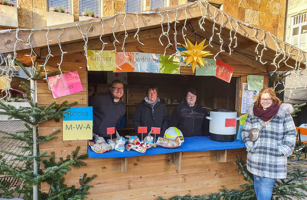 Natürlich durfte der Stand auf dem Bückeburger Weihnachtsmarkt nicht fehlen. So präsentierten sich alle sechs Kinderfeuerwehren gemeinsam am letzten Veranstaltungstag auf dem Marktplatz und boten ein buntes Angebot. Neben Spiel, Spaß und Basteln, konnte auch selbstgemachte Meisenknödel und Dekoration erworben werden. Dieses Angebot wurde gut von den Besuchern angenommen und so zeigten sich die Kinderfeuerwehren sehr zufrieden.