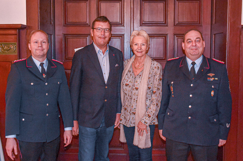 Die Geschäftsführung um die Eheleute Eggers wurde eine Spende in Höhe von 2.400 Euro für die Kameradschaftskassen der neun Ortsfeuerwehren und ihrer Jugend- und Kinderfeuerwehren an Stadtbrandmeister Marko Bruckmann und den Vorsitzenden des Feuerschutzausschusses Cord Siekmeier überreicht.