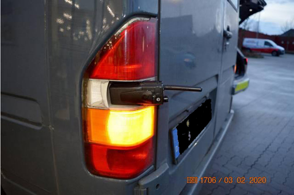 Das Rücklicht des Transporters funktioniert als Halterung fürs Funkgerät tadellos. (Foto: Polizei)