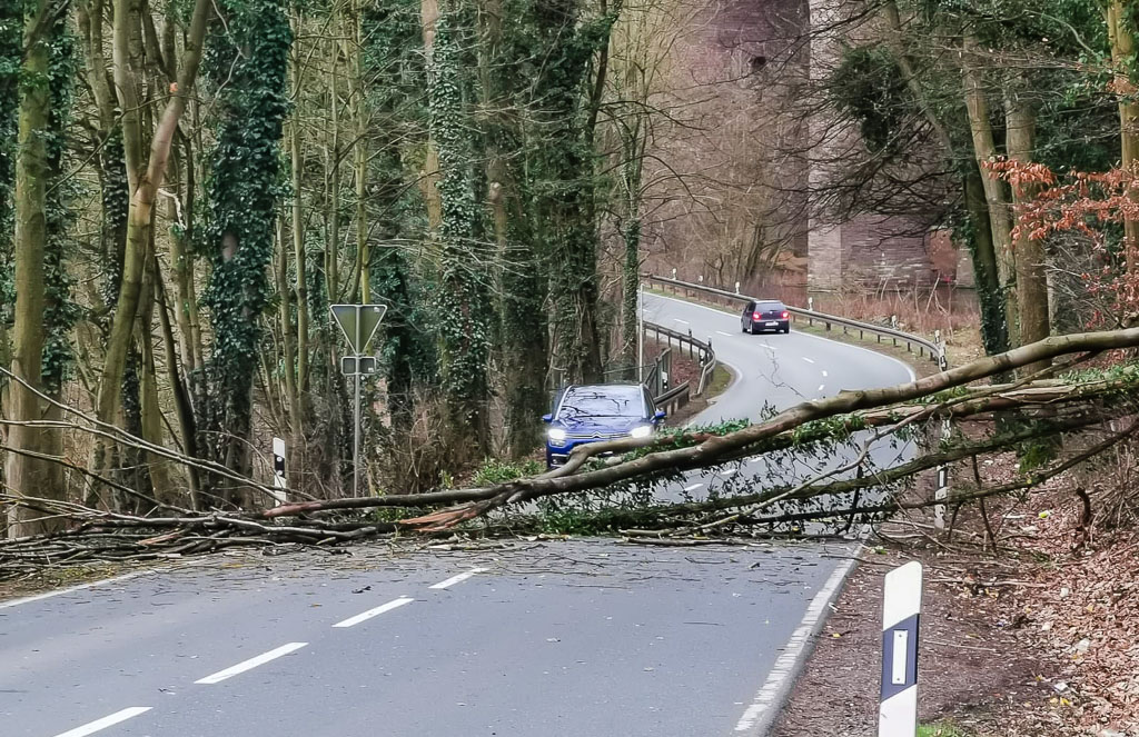 Von 14.00 Uhr bis 14.30 Uhr gab es mehrere umgeknickte und abgefallene Verkehrszeichen und einen umgestürzten Baum in Bückeburg.