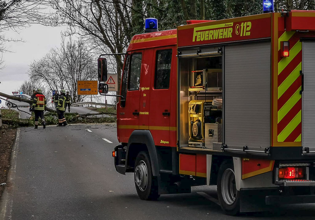 Ein Baum, der umzustürzen drohte, wurde gegen 20.00 Uhr auf der Scheier Straße in Bückeburg gesichert. Der erste Verkehrsunfall ereignete sich um 20.15 Uhr auf der B 65 in Höhe Röcke, wo ein PKW gegen eine Baumkrone fuhr. Die Feuerwehr wurde um 22.15 Uhr unterstützt, die Baumfällarbeiten auf der B 65 in Obernkirchen/Gelldorf erledigen musste.