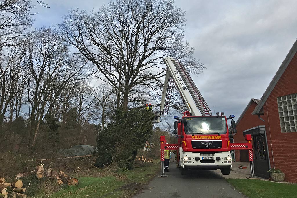 Die Feuerwehr Wiedenbrügge musste, um an den Ast zu gelangen, die Hubrettungsbühne aus Stadthagen anfordern.