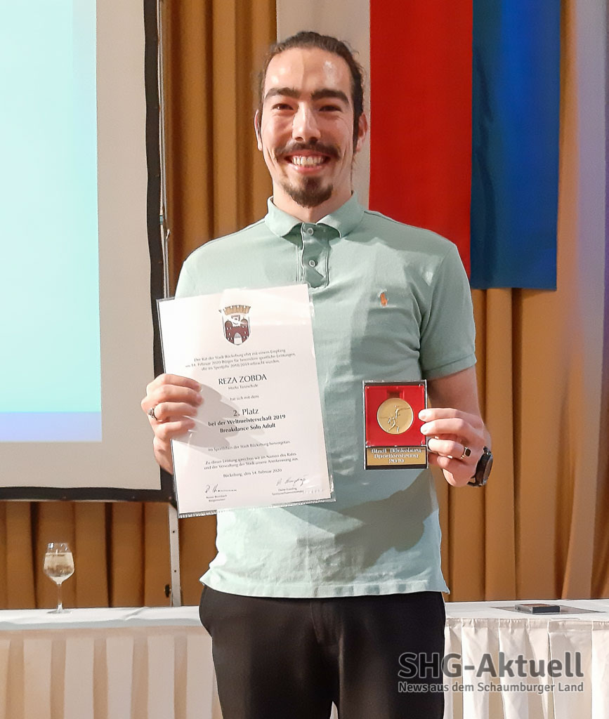 Höhepunkt des Empfangs war der Auftritt der geehrten Tänzer von Marks Tanzschule. Sowohl die Großen als auch die Kleinsten boten Tanzkunst in Perfektion. Inhaber Mark Rudi bedankte sich bei allen Eltern und Helfern im Hintergrund für die Unterstützung der Tänzer und den „Fahrdienst“. Tenor beim Publikum: „Ein toller Auftritt, eine tolle Choreografie.“ Die Tänzer von Marks Tanzschule holten sich den 1. Platz der Weltmeisterschaft im Breakdance Drew Adult.