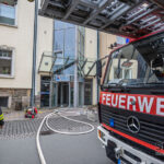 Die Feuerwehrleute stellten eine starke Verqualmung der Kellerräume fest und führten Löscharbeiten mit einer Kübelspritze durch. Ein Löschschlauch (C-Rohr) blieb in Bereitstellung, musste aber nicht zum Einsatz gebracht werden. Mittels Hochdrucklüfter wurde das Gebäude belüftet. Als Brandursache stellte sich ein letztendlich offenbar ein Kaffeeautomat heraus, der augenscheinlich einen technischen Defekt aufwies. Erste Informationen, wonach ein Schaltschrank gebrannt haben sollte, bestätigten sich nicht.