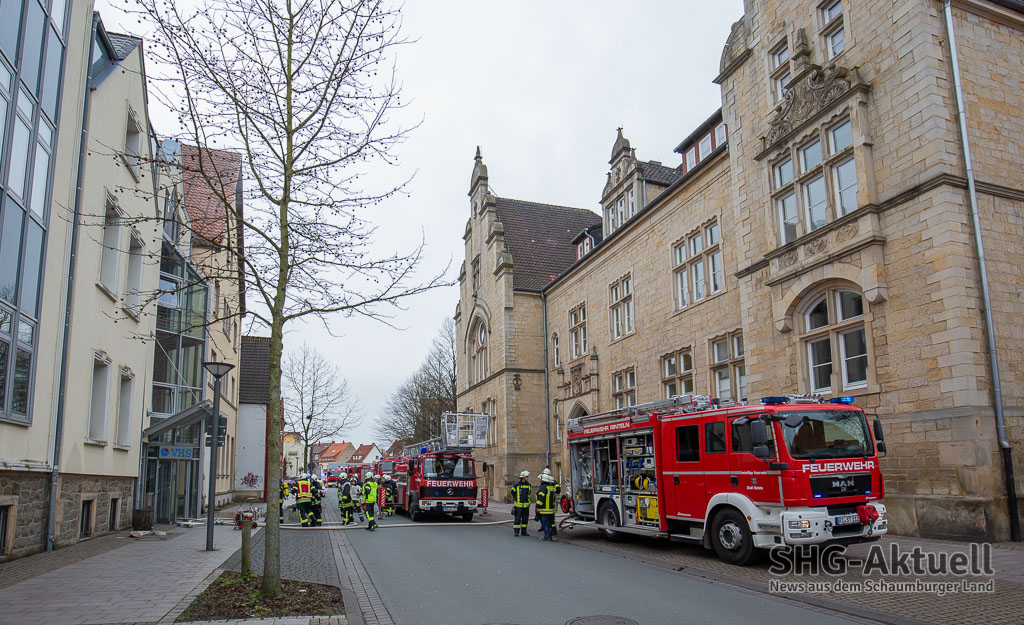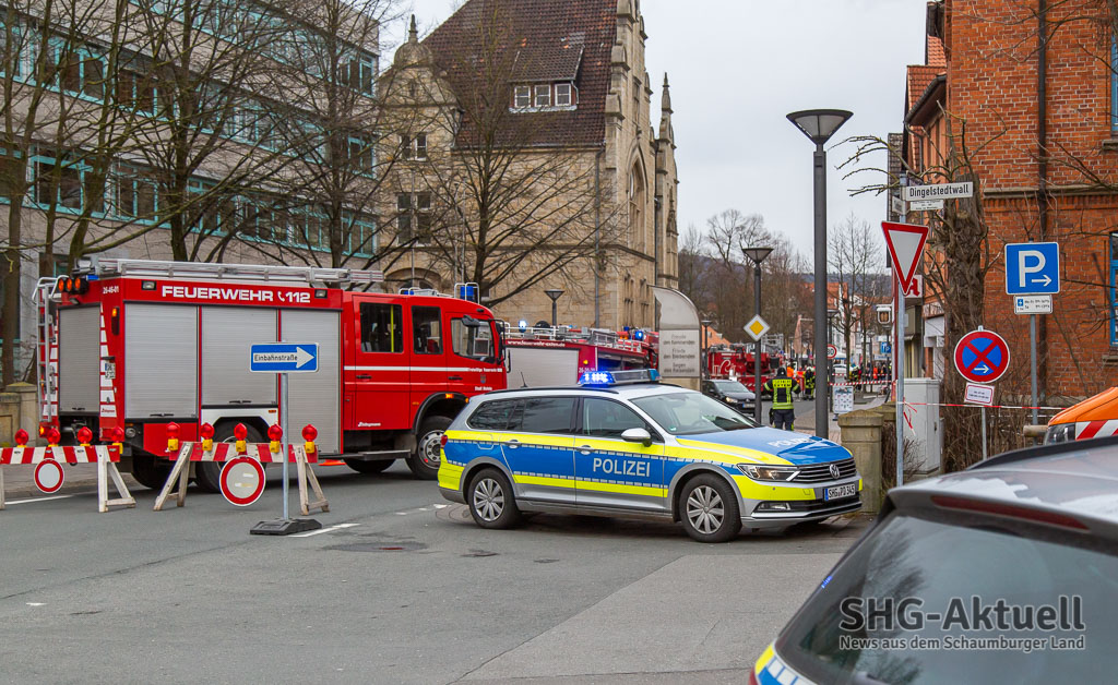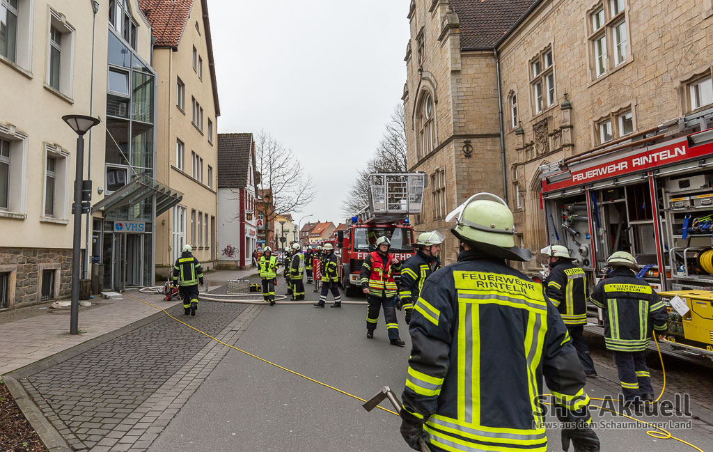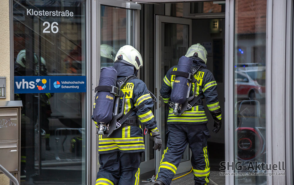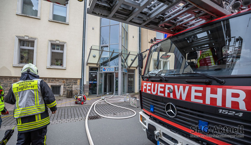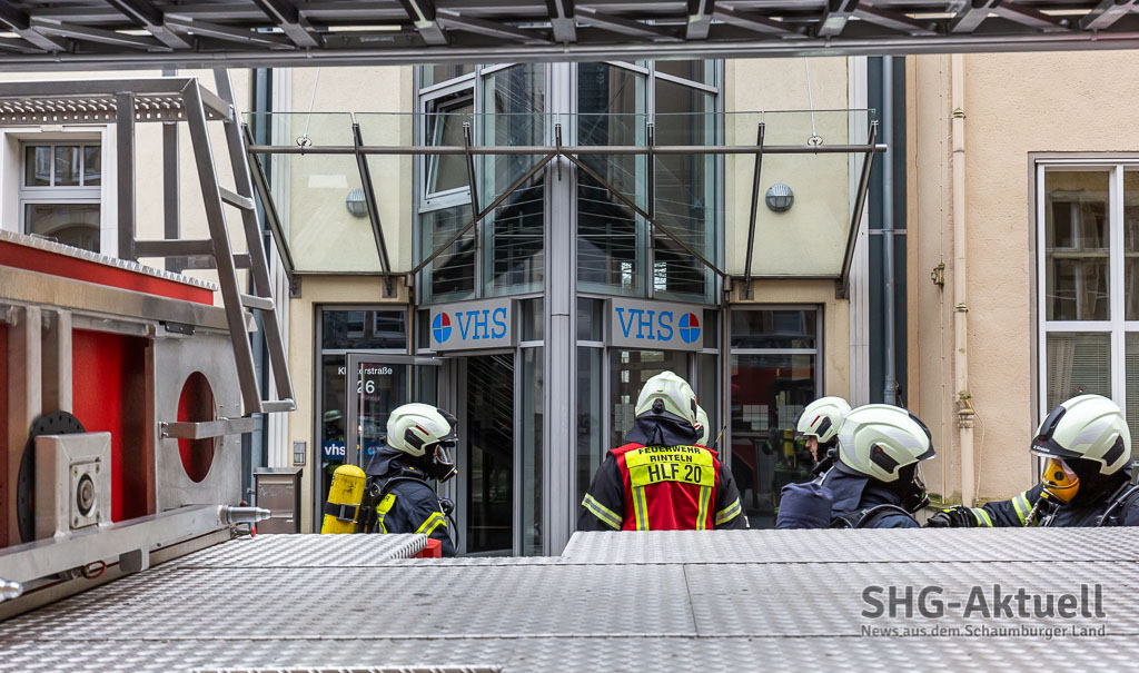 (Rinteln) Heute gegen 11:45 Uhr wurden rund 80 ehrenamtliche Einsatzkräfte der Feuerwehren Rinteln, Todenmann, Möllenbeck, Exten, Unter der Schaumburg, die Umweltschutzeinheit des Landkreises Schaumburg zusammen mit Polizei und dem Rettungsdienst zu einem Einsatz in die VHS Rinteln am Standort Klosterstraße alarmiert.