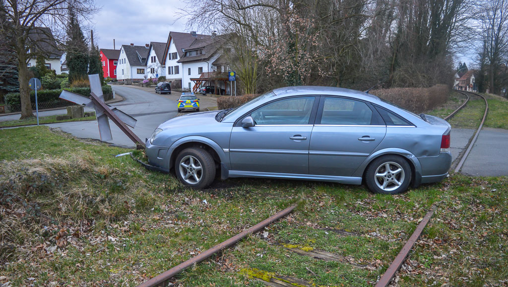 Die Ermittlungen vor Ort ergaben, dass ein 24jähriger Obernkirchner mit seinem Opel Vectra die Piepenbreite aus Richtung Rintelner Straße befuhr. Aufgrund seiner Alkoholisierung verlor er laut Polizei schon vor dem Beginn des Bahnübergangs die Übersicht über den dort anspruchsvollen Straßenverlauf und fuhr in der Steigung geradeaus teils auf das Gleisbett in Richtung Bahnhof. Dabei musste ein Andreaskreuz seinem Fahrzeug unfreiwillig weichen und wurde zerstört. Der PKW blieb mit dem Heck im Gleisbett liegen und war auch so nicht mehr aus eigenem Antrieb dort zu entfernen.