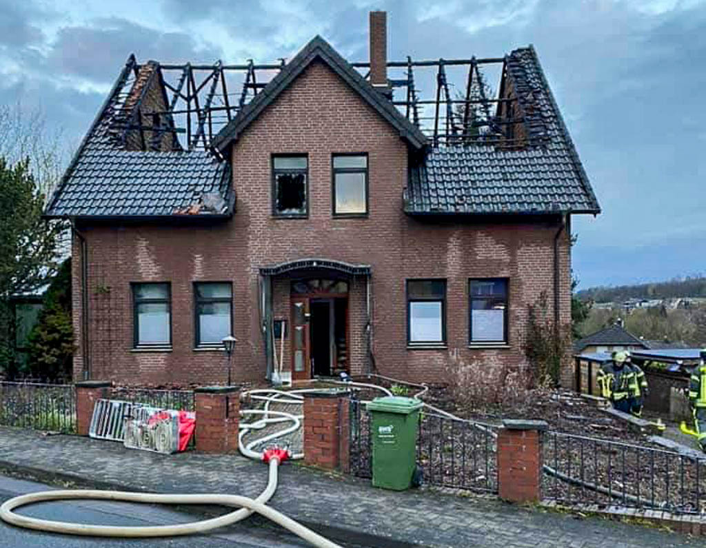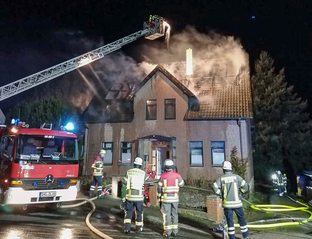 Dort stand ein Einfamilienhaus in Vollbrand. Personen, die sich im Inneren des Hauses befanden, konnten sich unter anderem durch die Hilfe von Nachbarn rechtzeitig in Sicherheit bringen. Zwei Bewohner wurden mit Verdacht auf Rauchgasvergiftung ins Krankenhaus gebracht. Die Haustiere konnten ebenfalls rechtzeitig gerettet werden.