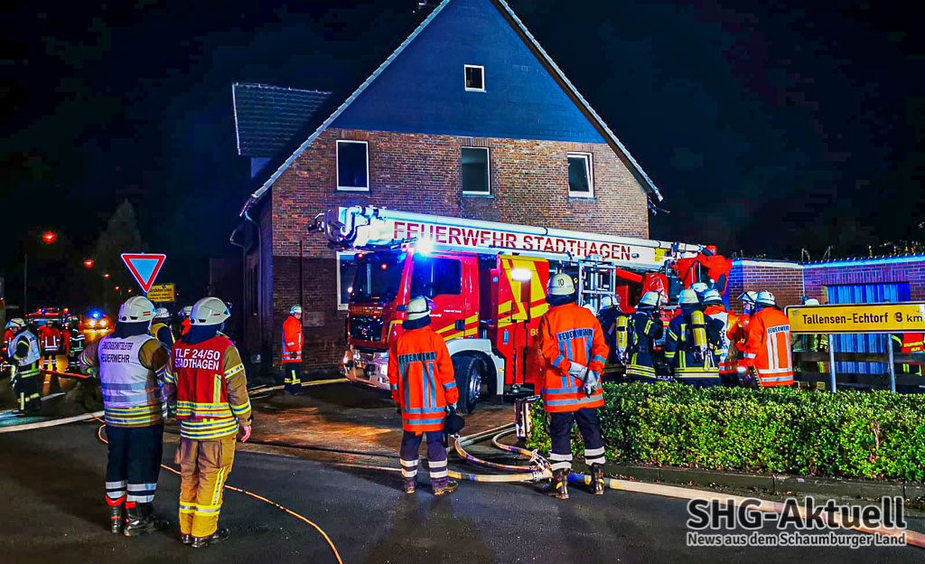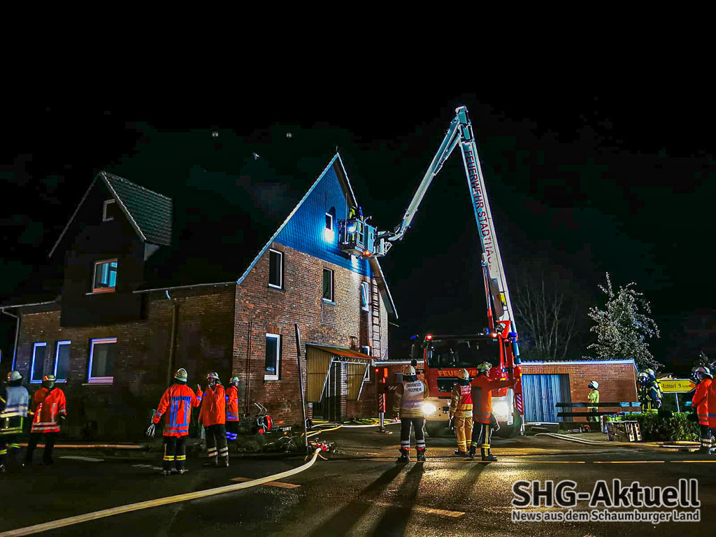Vor Ort waren u.a. Einsatzkräfte der Feuerwehren Schierneichen-Deinsen-Baum, Tallensen-Echdorf, Seggebruch, Hespe Stadthagen (inkl. Hubrettungsfahrzeug) , Helpsen und Südhorsten. Nach erfolgten Löscharbeiten kam die Wärmebildkamera zur Kontrolle zum Einsatz. Verletzte gab es nach ersten Informationen nicht. Wir berichten nach, sobald uns erweiterte Erkenntnisse vorliegen. (Fotos: weserWEB)
