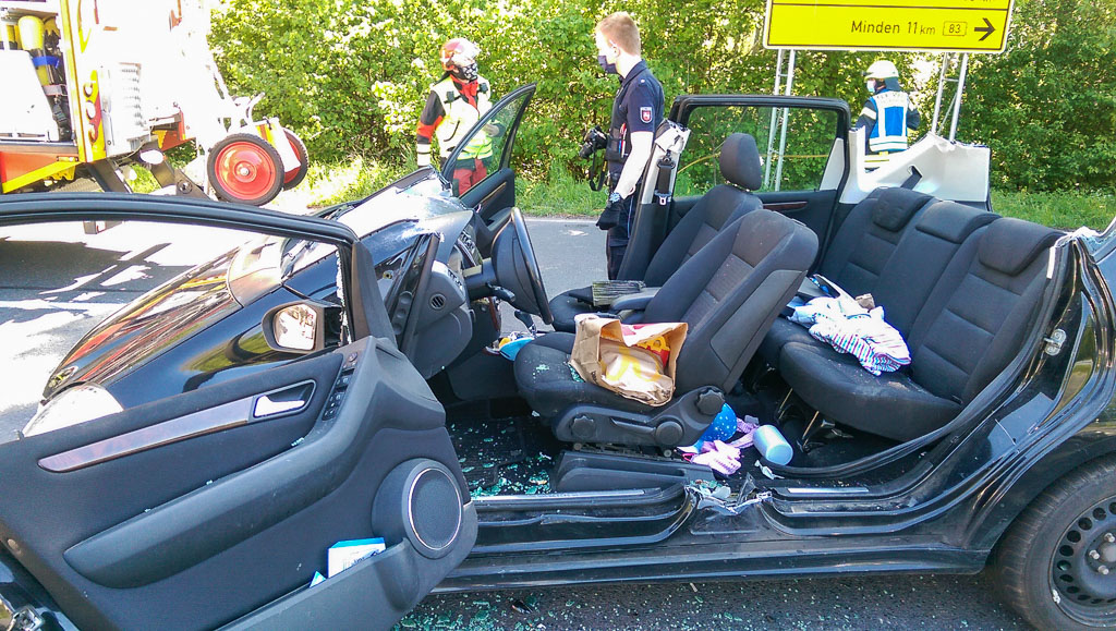 Die Feuerwehr trennte das PKW-Dach ab, um die schwer verletzte Fahrerin befreien zu können.Die Schwerverletzte, die mit dem Rettungshubschrauber in das Klinikum nach Bielefeld geflogen wurde, war mit ihren beiden Kindern (3 und 4) unterwegs, die beide auf der Rücksitzbank gesichert waren und unverletzt blieben. Der Dacia-Fahrer blieb unverletzt, gegen den Bückeburger wurde ein Ermittlungsverfahren wegen fahrlässiger Körperverletzung eingeleitet.