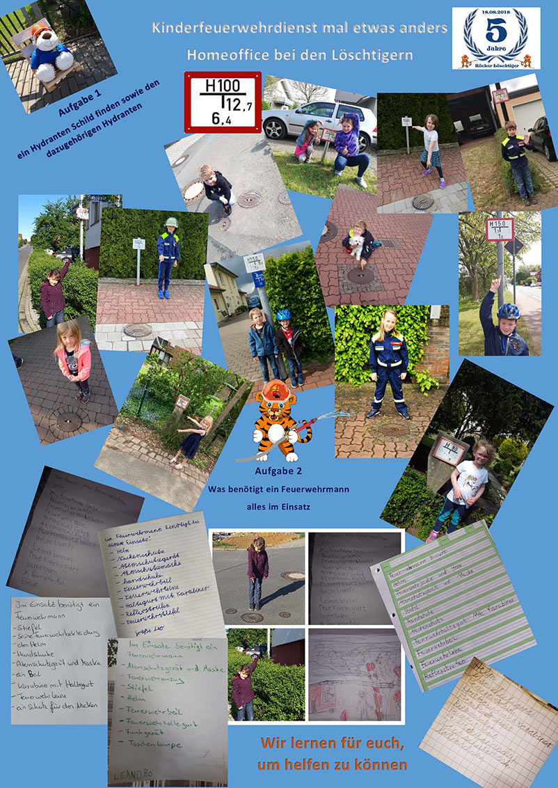 Am kommenden Freitag wird es vom Kinderfeuerwehrwart Manuel Steckel und seinem Team eine neu Aufgaben geben. Wer die Aufgaben ebenfalls mal sehen möchte, kann diese auf der Facebook-Seite „Kinderfeuerwehr Röcke“ bzw. auf dem YouTube-Kanal der Kinderfeuerwehr aufsuchen.